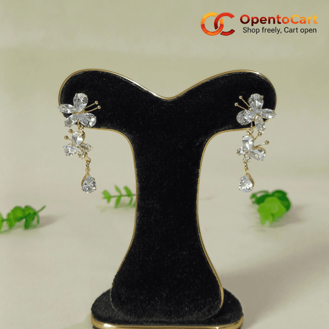 নিজের লুকে এক রাজকীয় এবং মডার্ন আভিজাত্য যোগ করতে বেছে নিন আমাদের এই Premium Diamond Cut Butterfly Earrings। এর বিশেষত্ব হলো এর চমৎকার ডাবল-বাটারফ্লাই ডিজাইন যা ঝকঝকে American Diamond (AD) পাথর দিয়ে তৈরি। প্রতিটি পাথর এমনভাবে কাটা হয়েছে যা যেকোনো আলোতে হীরার মতো উজ্জ্বলতা দেয়।