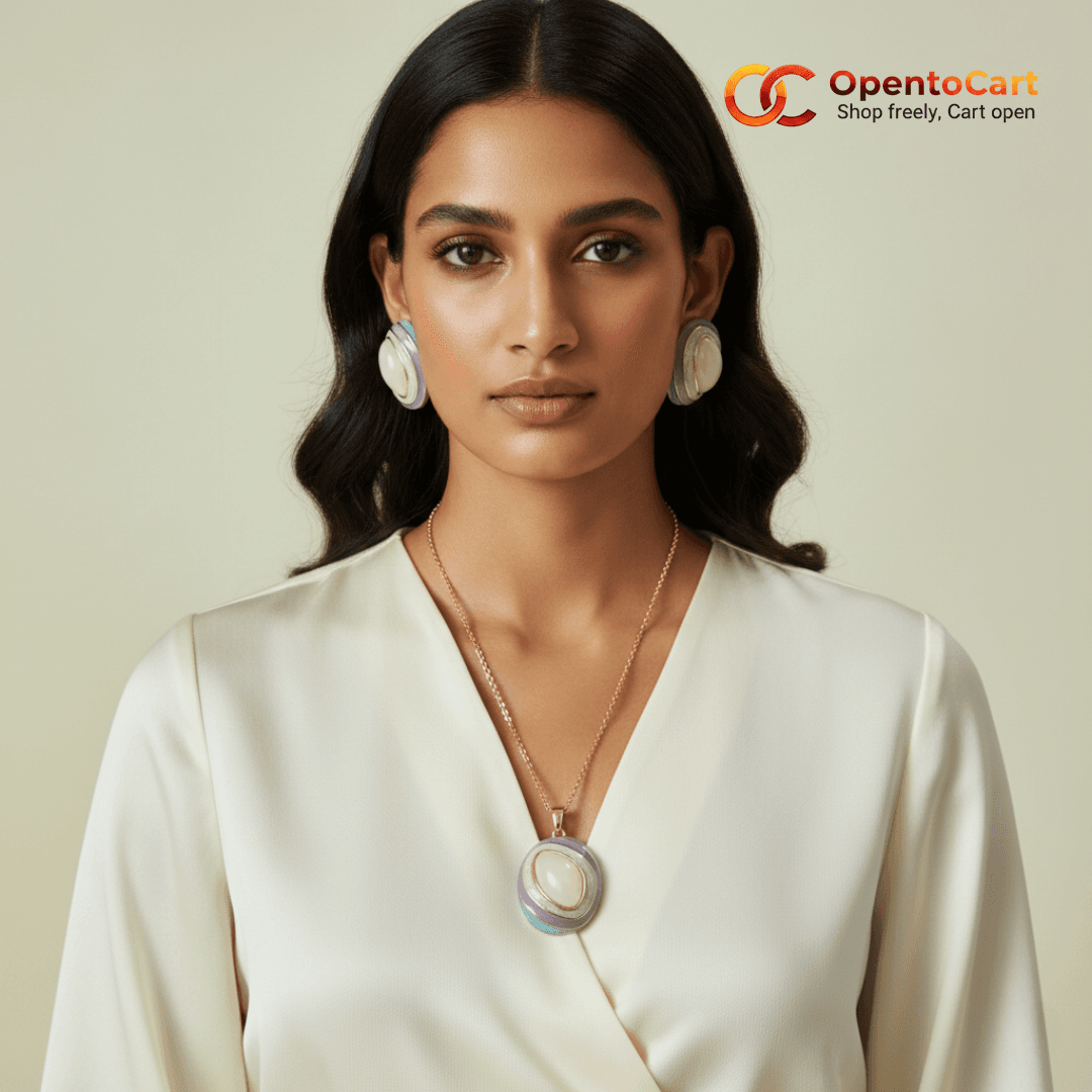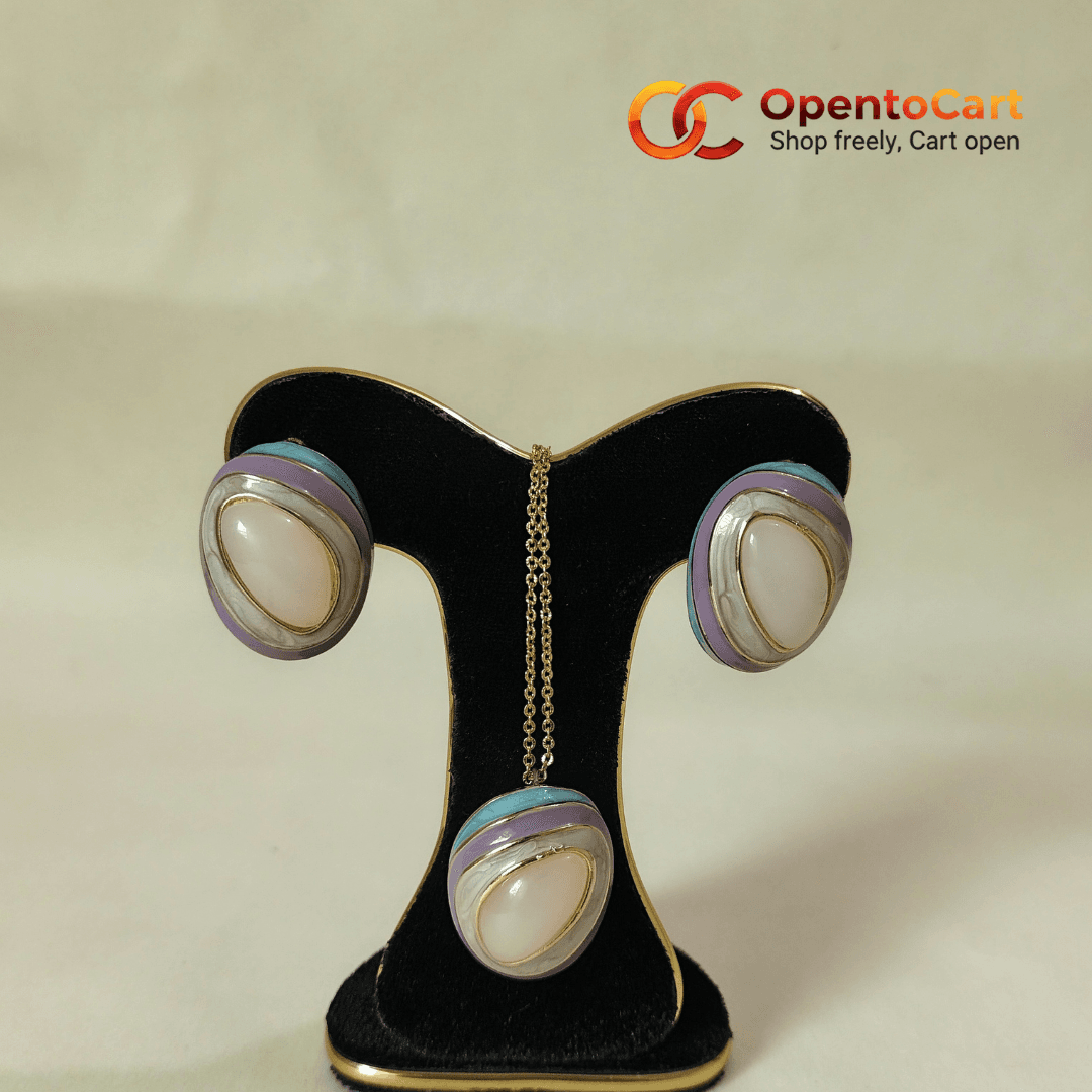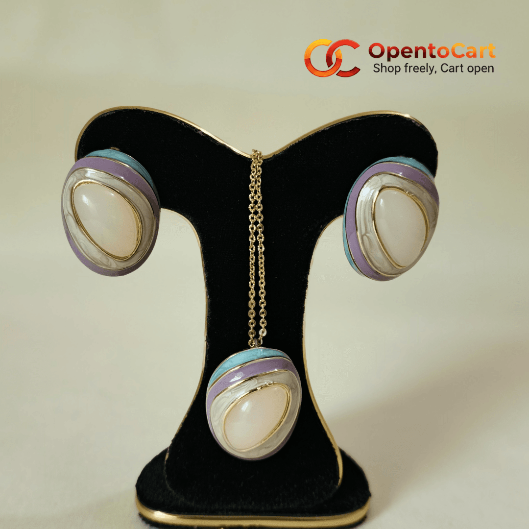 আপনার ওয়েস্টার্ন কিংবা গর্জিয়াস এথনিক সাজে আভিজাত্য যোগ করতে বেছে নিন এই Premium Oval Pendant Set। এর ইউনিক ডিজাইনে ব্যবহার করা হয়েছে Pastel Lavender & Sky Blue enamel borders এবং মাঝে রয়েছে একটি চমৎকার Creamy Marble-finish stone।